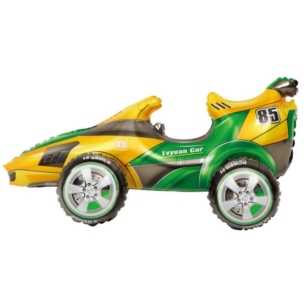 3D Folieballong - Racerbil, guld-grön, 72x34cm