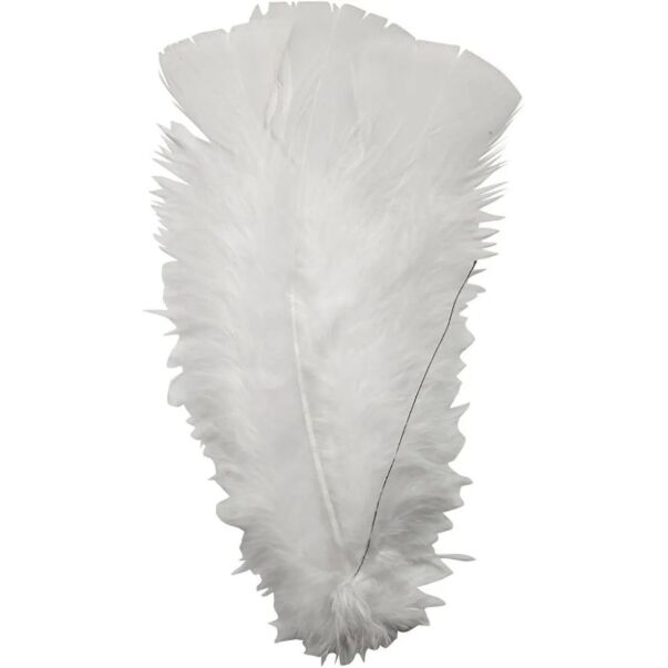 Äkta fjädrar - Vit, Med ståltråd, 11-17cm, 18-pack