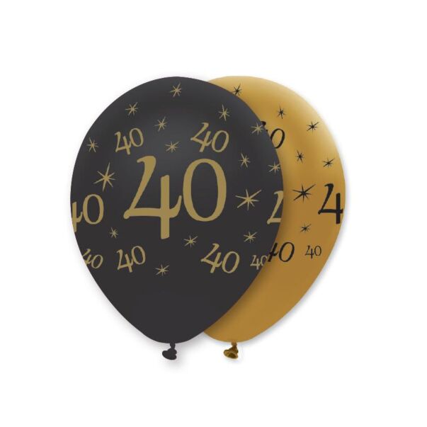 Ballonger med siffran 40 - Svart och guld, 6-pack