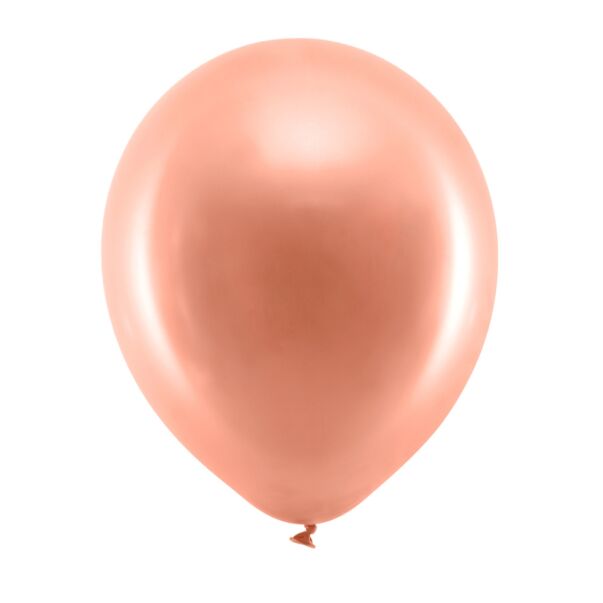 Ballonger i metalliskt roséguld. Mjuka latexballonger är lätta att blåsa upp och knyta. Kan fyllas med helium eller luft. Med helium är flygtiden cirka 6-8 timmar, men du kan förlänga flygtiden genom att använda Hi-Float.