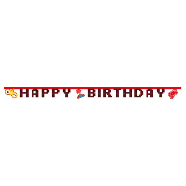 Banner med speltema - Happy Birthday, perfekt för Gaming Party!