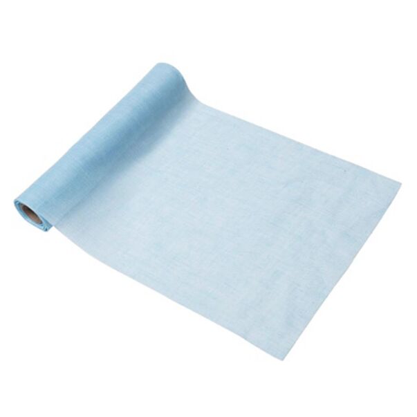 Bordslöpare i ljusblått muslintyg, 28 cm x 5 m.