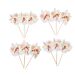 Dekorativa pinnar med Pampas/Boho-tema. Vit bakgrund, bild på en blombukett med guld, beige och rosa toner.