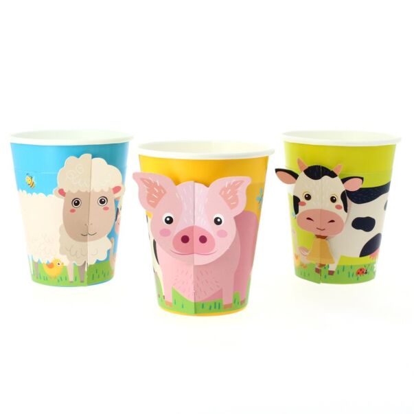 Pappersmuggar med bondgårdens djur, 6-pack.