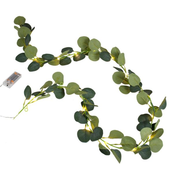 Vacker eukalyptus girlang med LED-lampor! Placera girlangen på ett bord som stämningsfull dekoration eller häng den där du vill, till exempel kring en dörrpost.