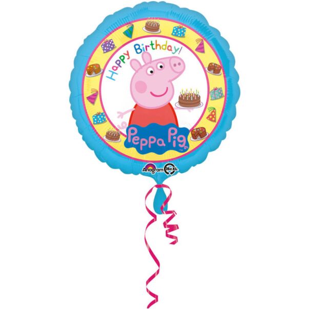 Rund folieballong med bild på Greta Gris och texten Happy Birthday. Fira födelsedagen med Greta Gris!