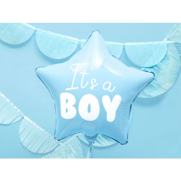 En fin stjärnformad folieballong med texten "It's a boy". Perfekt för baby shower-kalas. Ballongen kan fyllas med helium eller luft.