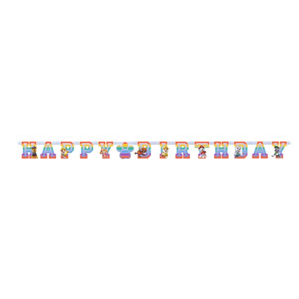 Bokstavsbanner med texten "Happy Birthday", Paw Patrol-motiv. 1,8 m lång.