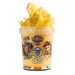 Färdig gul sockervadd på burk. I burken finns även 10 stycken Paw Patrol klistermärken.