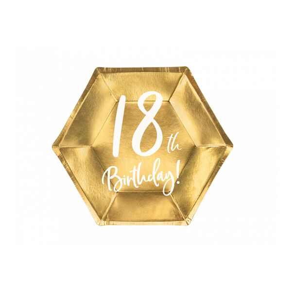 Gyllene papperstallrikar, 18th Birthday, 20 cm, 6-pack