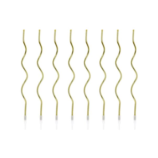 Gyllene tårtljus - Tunna, vågiga, 8-pack
