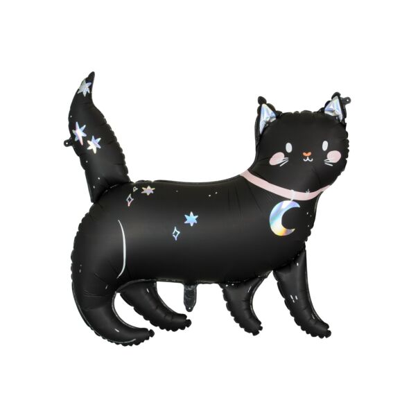 En underbar kattfolieballong med skimrande holografiska detaljer, perfekt för Halloween eller kattkalas!