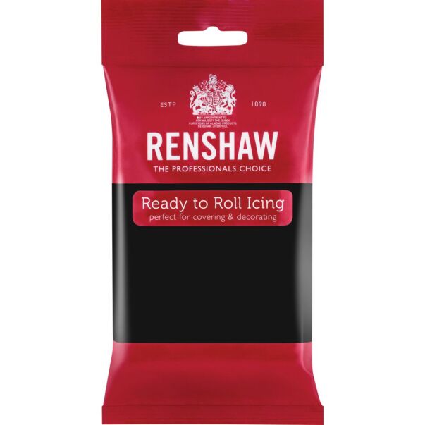 Renshaw svart sockerpasta, 250g. Sockerpastan är lättarbetad, stadig och lämplig att formas till tårtdekorationer. Denna vaniljsmakande och elastiska sockerpasta är ett bra och säkert val för glasyr av tårtor, kex och muffins. Vi rekommenderar denna för höga tårtor och ifall sockerpastan behöver kavlas mycket tunn.