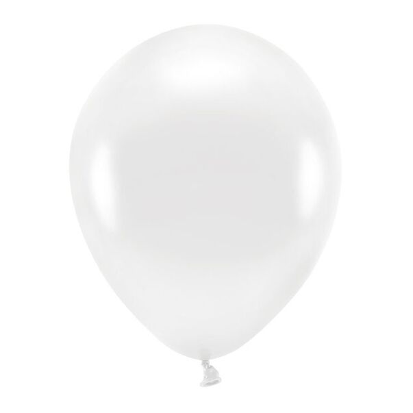 Runda vita metallskimrande ballonger som passar på många olika fester. Ballongerna är ekologiska och kan fyllas med helium eller luft.
