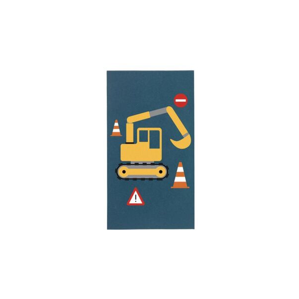 Ett litet mini-häfte med en bild av en grävmaskin. Passar bra att sätta i piñatan eller i kalaspåsen.