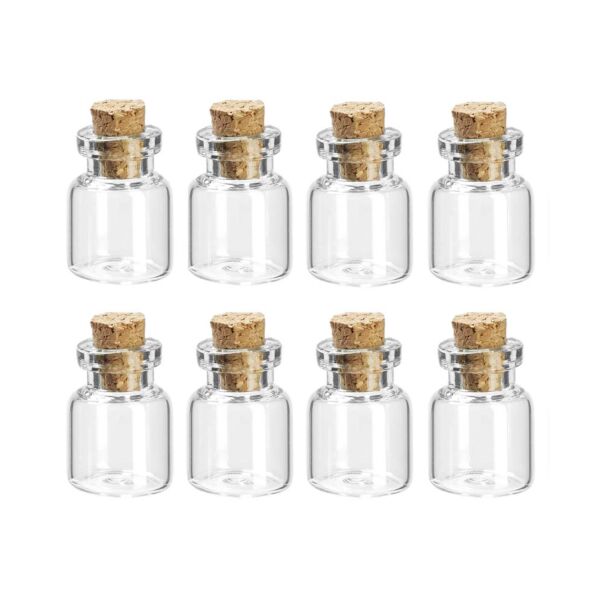 Miniatyr - Små glasburkar med kork, 2,2cm, 8-pack.