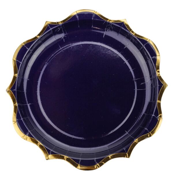 Papperstallrikar - Marinblått med guldkant, 23 cm, 8-pack