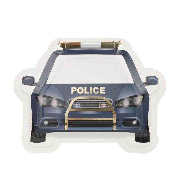 Polisbilsformade papperstallrikar, 8-pack.