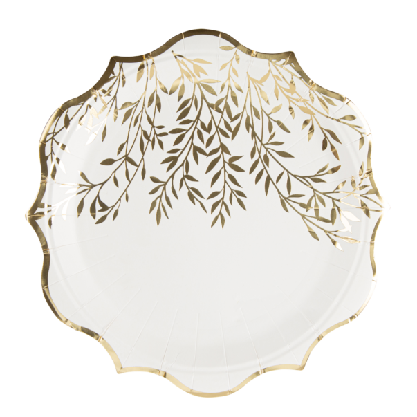 Papptallrikar - Vita med guldblad, 23cm, 8-pack