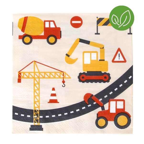Servetter med byggarbetsplats-tema.