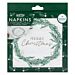 Vita servetter med kransbild och gulddetaljer. Perfekt för juldukningen!