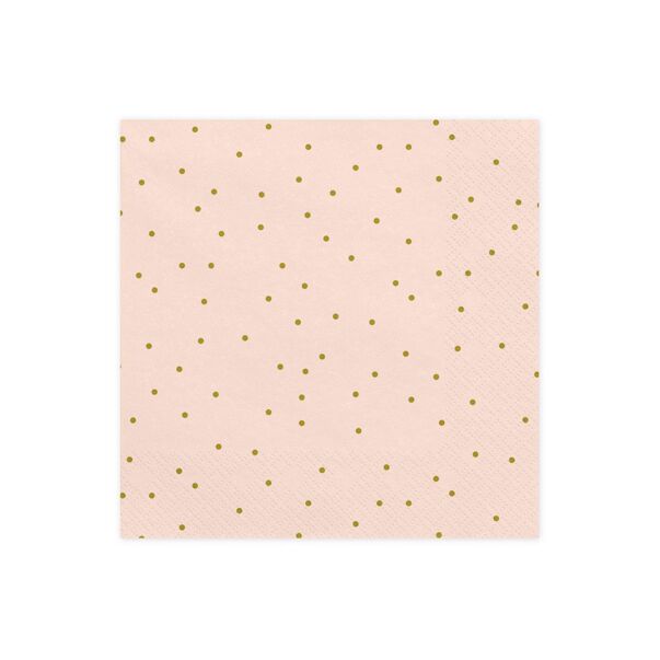 Fina ljusrosa servetter med guldfärgade prickar, 20-pack.
