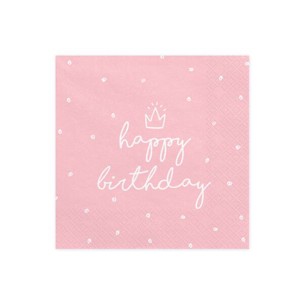 Rosa servetter med texten "Happy Birthday", 20-pack.