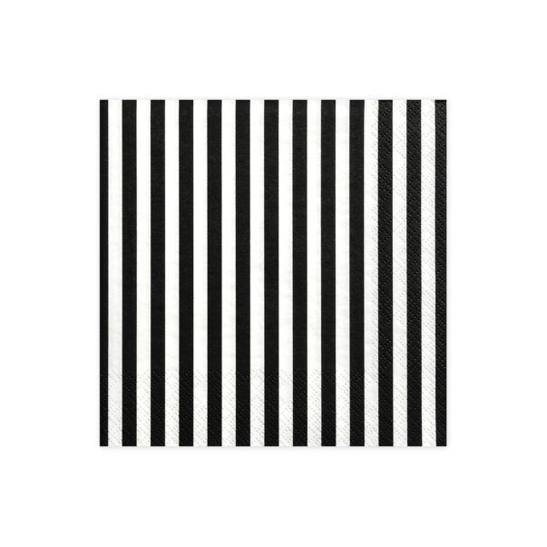 Svartvit randiga servetter. Förpackningen innehåller 20 servetter, storlek 33 x 33 cm när de är helt öppnade.