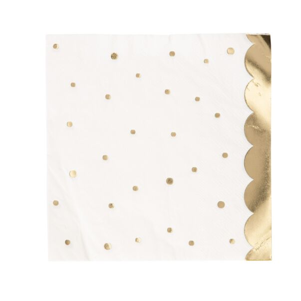 Vackra vita servetter med gulddetaljer. Snygg guldkant och prickar.