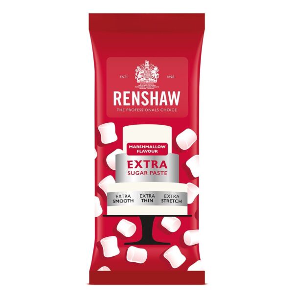 Renshaw Extra är starkare och mer elastisk än andra sockerpasta. Renshaw Extra lämpar sig bäst för att täcka tårtor, men med lite CMC-pulver kan den också användas för att forma dekorationer. Sockerpasta är lätt att arbeta och lätt att rulla. Vi rekommenderar Renshaw Extra för höga tårtor och om sockerpastan behöver rullas mycket tunt.