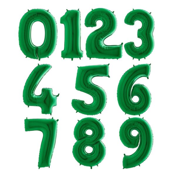 Gröna sifferfolieballonger 0-9. Välj den siffra du vill ha.