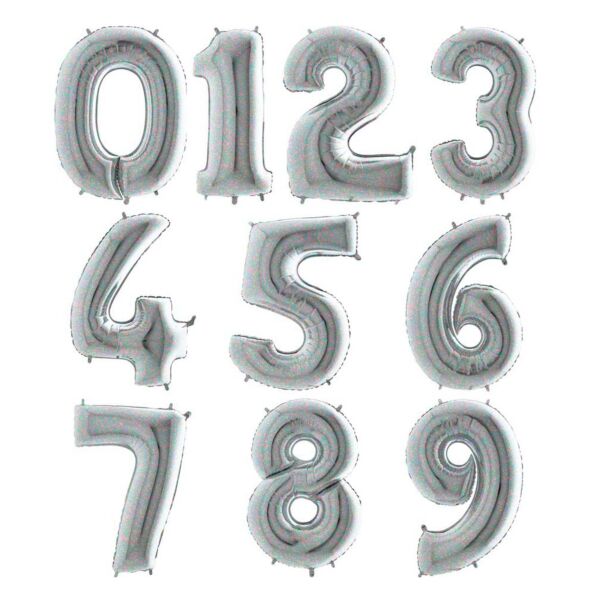 Stora sifferfolieballonger - Silver-hologram, 100cm