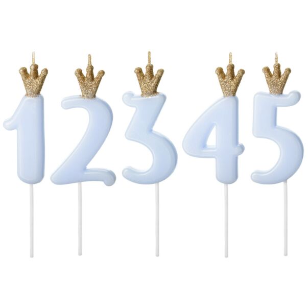 Ljusblå siffertårtljus med krona.
