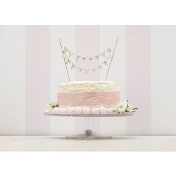 Söt naturvit tårtvimpel med texten: "Just Married". En rolig detalj på bröllopstårtan.