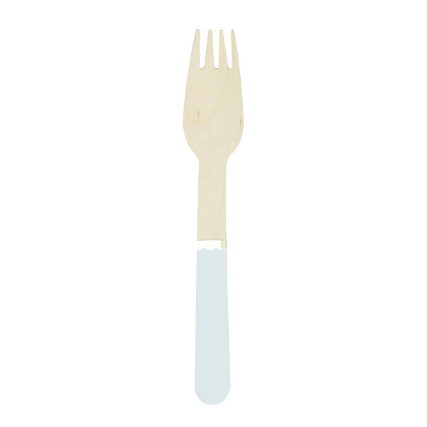 Trägafflar med ljusblått skaft och guldkant, 8-pack.