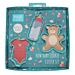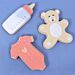 Set med tre utstickare med babytema: en nallebjörn, en body och en nappflaska.