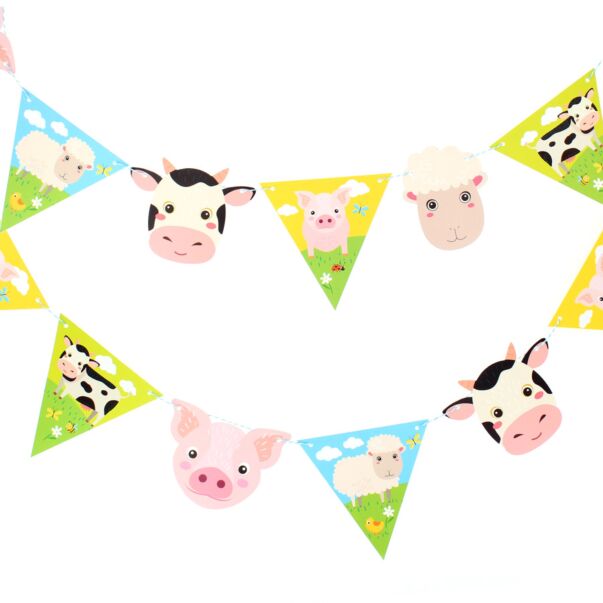 Fantastisk vimpelgirlang med bondgårdens djur (ko, gris och får).